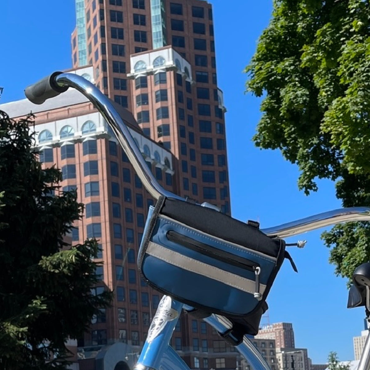 Cross body bag that converts to bike bag in a snap!Β Mounts on top tube bike frame with magnet closure or attaches to handlebars with straps and side release buckles.Β Perfect size for phone and other essentials.