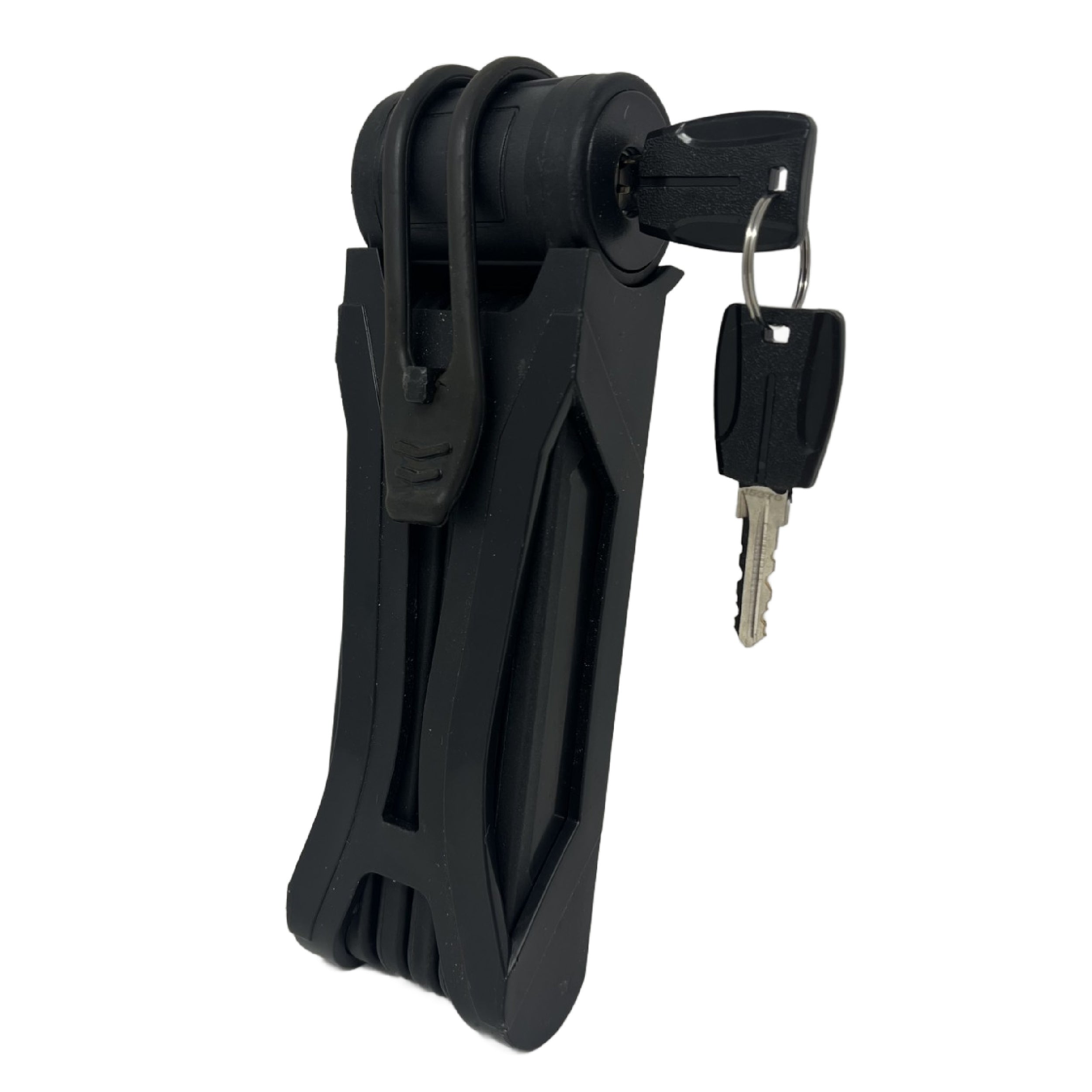Compact folding lock with reinforced stainless steel. Keyed lock that extends to 34″.Β Comes with case and mounts to Brazeons or straps to mount.