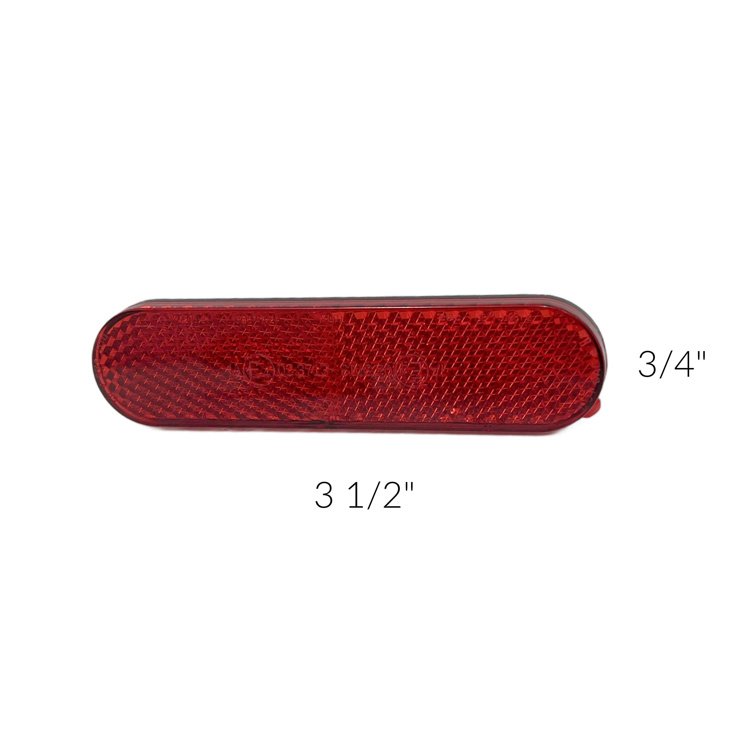 Reflector mounts with 3mm adhesive (PSA).  Dimensions are 3 1/2″ x 3/4″ and works with Bikase rear racks.