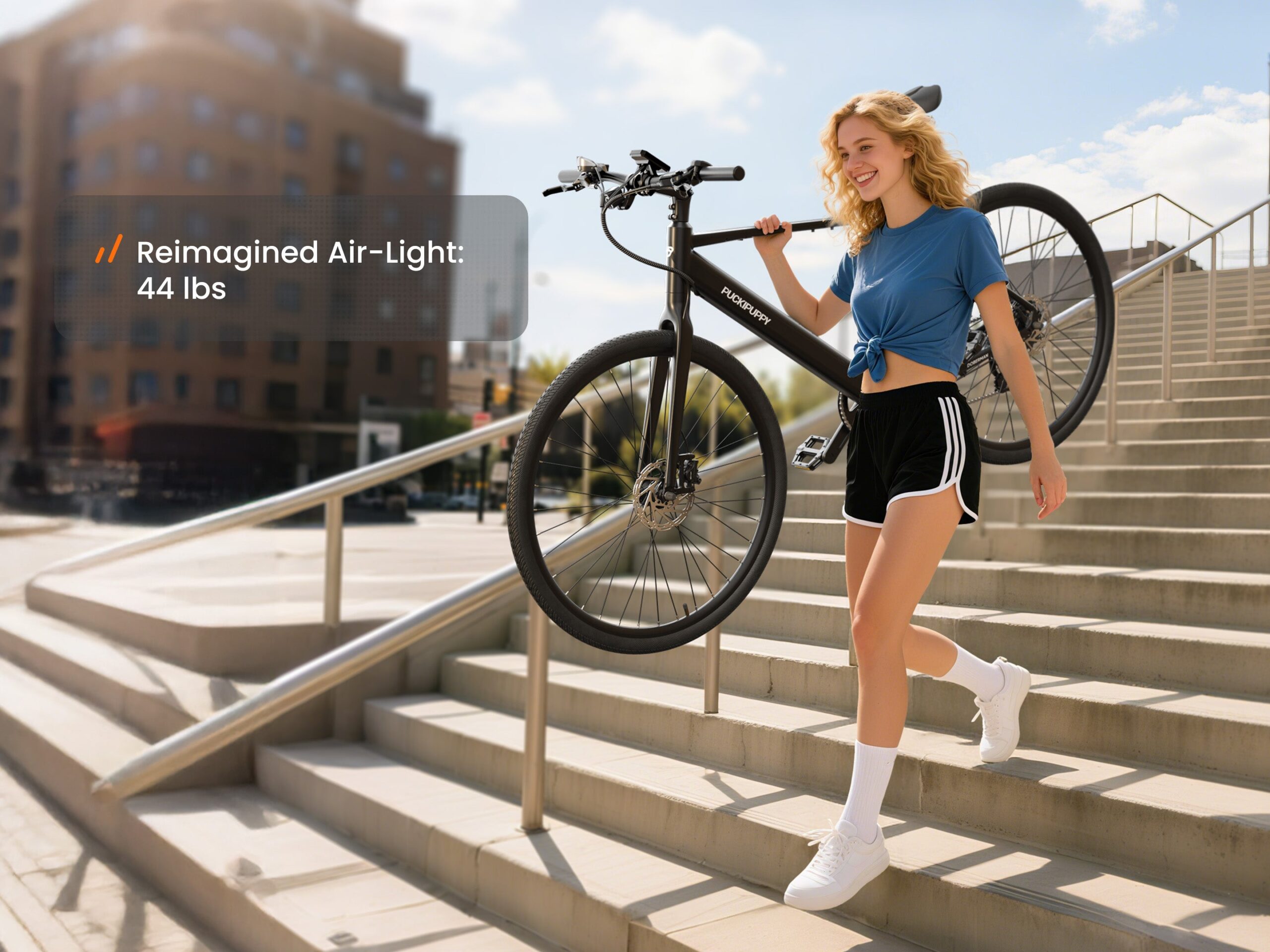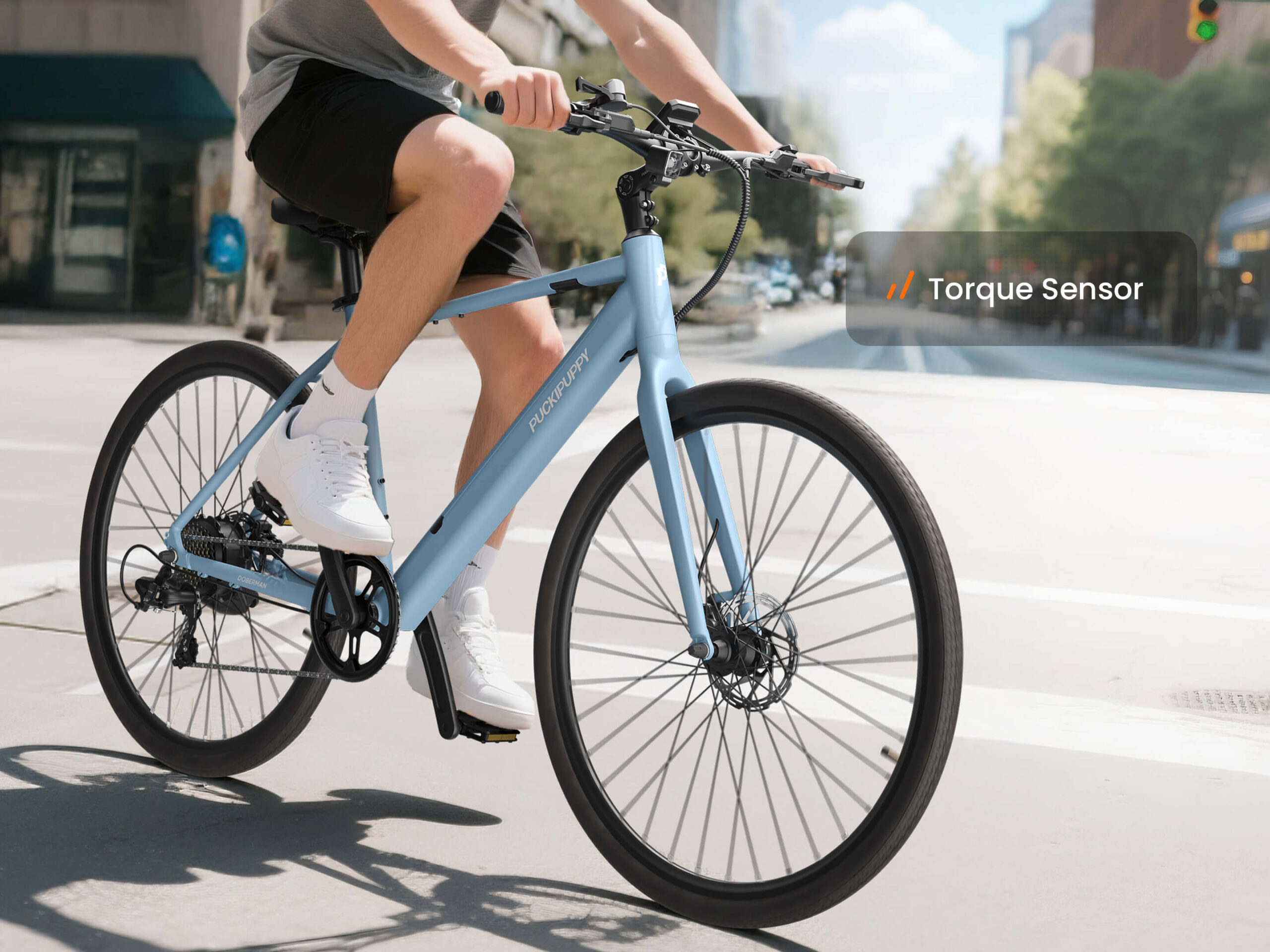 PUCKIPUPPY Doberman: The ultra-lightweight e-bike built for city living. At just 42 lbs, it’s easy to carry and store, yet powerful enough with a 600W peak motor and a 70-mile max range. Featuring dual torque/cadence sensors for a natural ride, an adjustable stem, and a UL-certified battery, it’s the perfect blend of portability and performance.