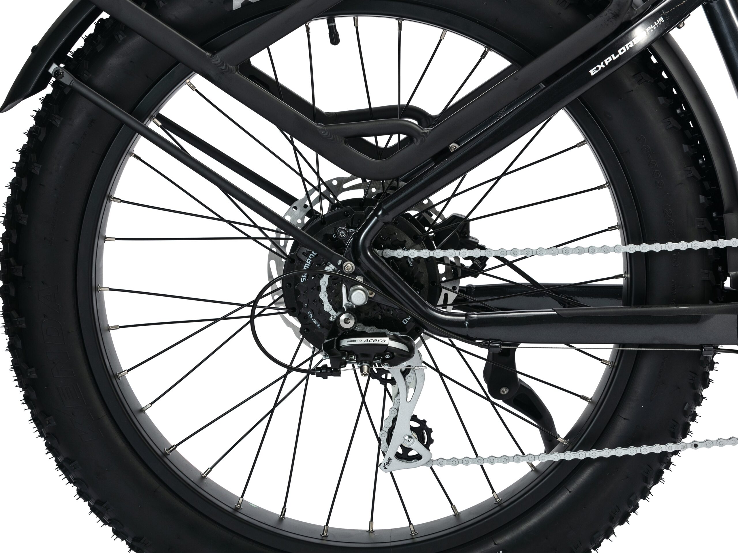 At the heart of the Expedition lies a premium Bafang® 750-watt hub-drive motor, delivering exceptional 86Nm of torque for conquering steep hills and powering through soft terrain. Paired with a long-range 48V 20Ah (960Wh) battery featuring high-quality Samsung® cells, you’ll have the power and stamina needed for extended expeditions, with a maximum range of up to 90 miles on a single charge. The battery is UL-2271 certified for the highest safety standards. With a throttle speed of 20 mph and pedal assistance up to 28 mph, you’re always in command of your adventure.