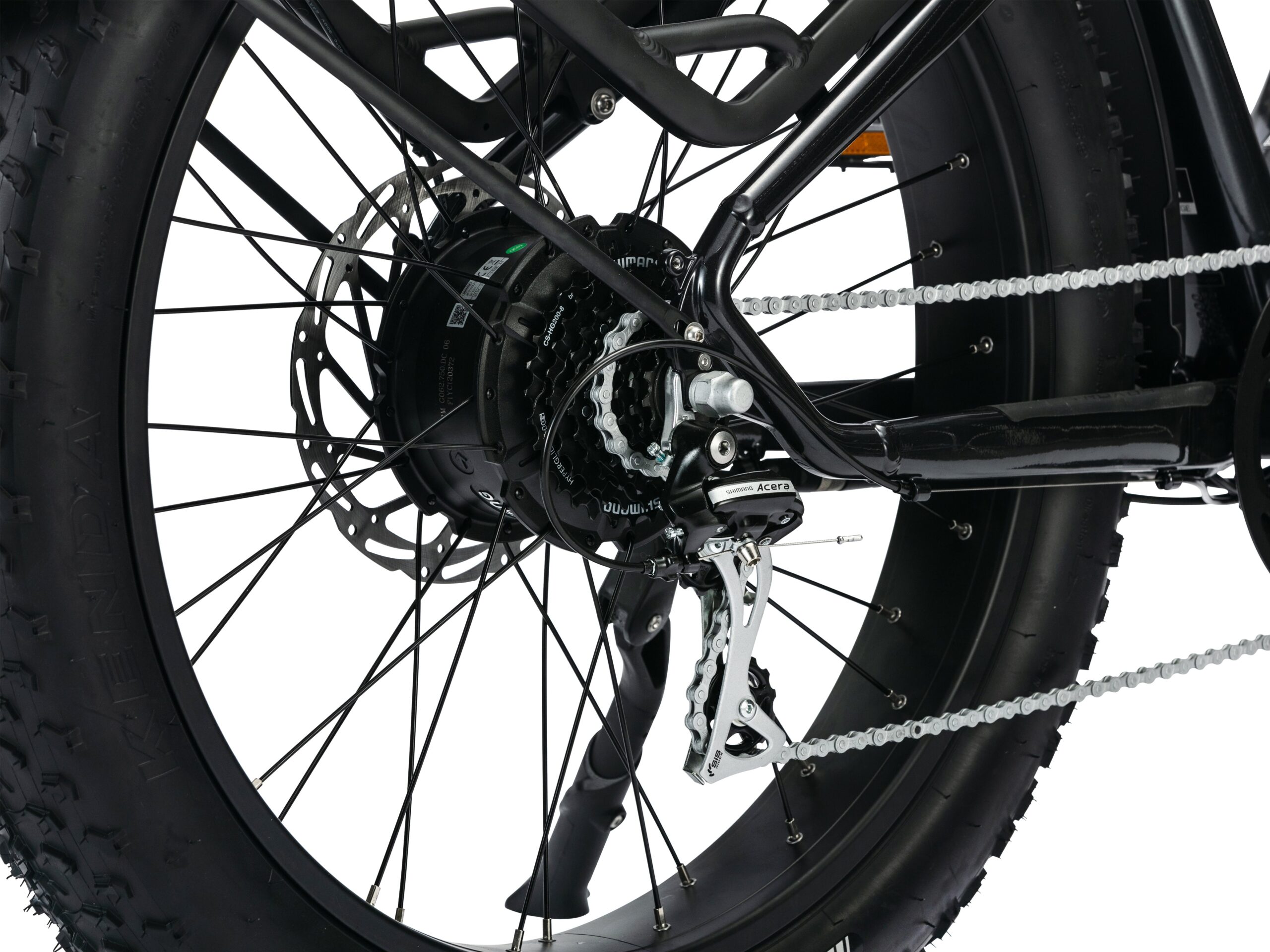 Adventures require gear, and the Expedition is engineered to handle it all. The heavy-duty, semi-integrated alloy rear rack is MIK-compatible and capable of carrying up to 100 pounds of cargo or a passenger, making it perfect for hauling hunting and fishing equipment, camping gear, or groceries. The robust 6061-T6 aluminum step-over frame provides exceptional stability and strength, supporting a total maximum load of 400 lbs. Complete with full-coverage alloy fenders, an adjustable side kickstand, and Kenda® 26″x4.0″ fat tires with anti-puncture K-Shield protection, this bike is ready for anything you throw at it.
