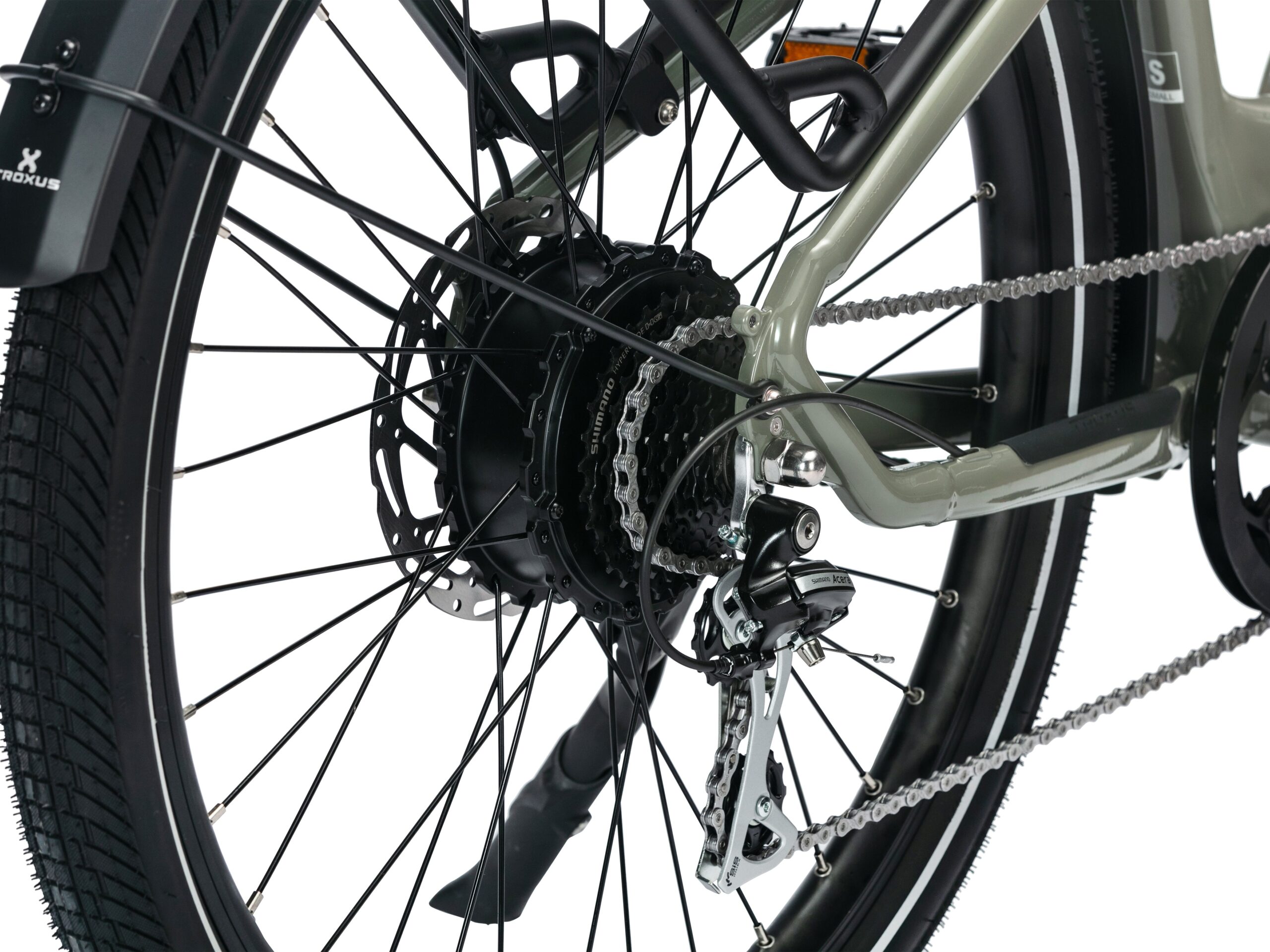 Stay in control with Tektro® hydraulic disc brakes (180mm rotors) for reliable stopping power in all conditions. The integrated color display with Bluetooth connectivity keeps your ride data accessible, while the 80 Lux front light and rear light with turn and hazard signals ensure you’re seen and safe. The hydroformed aluminum frame is available in Small Step-Thru, Medium Step-Thru, and Large Step-Over configurations to fit a wide range of rider heights.