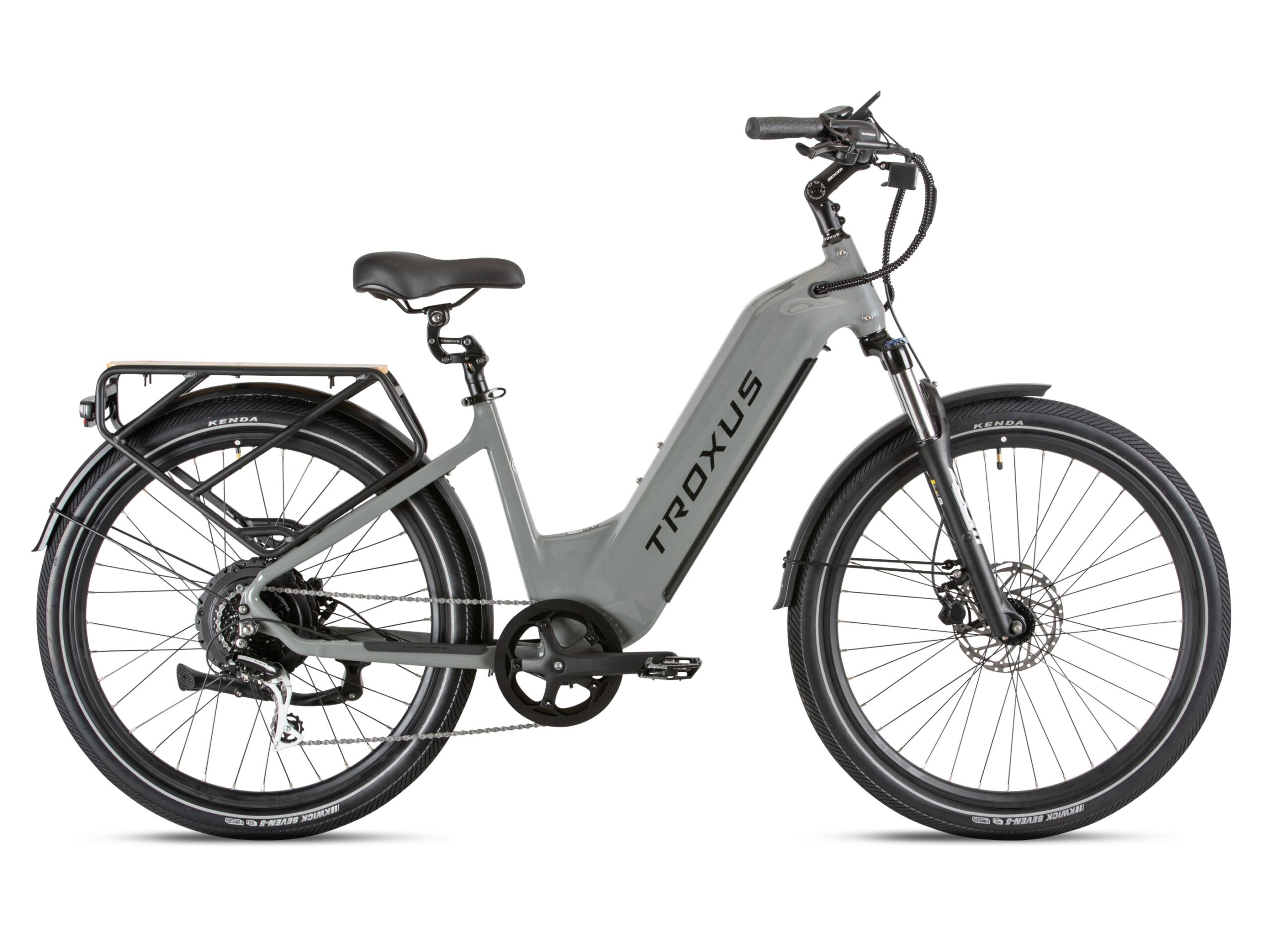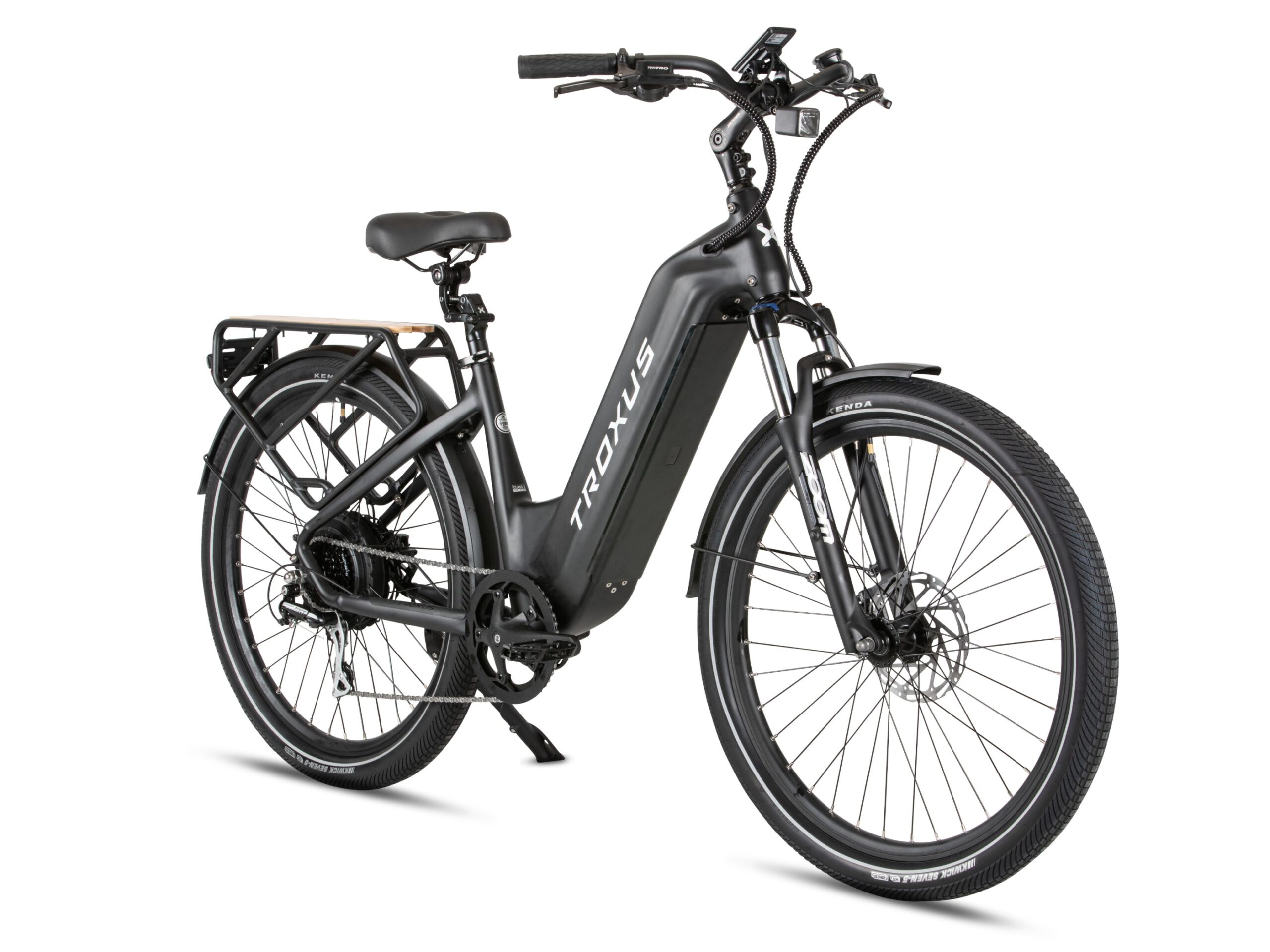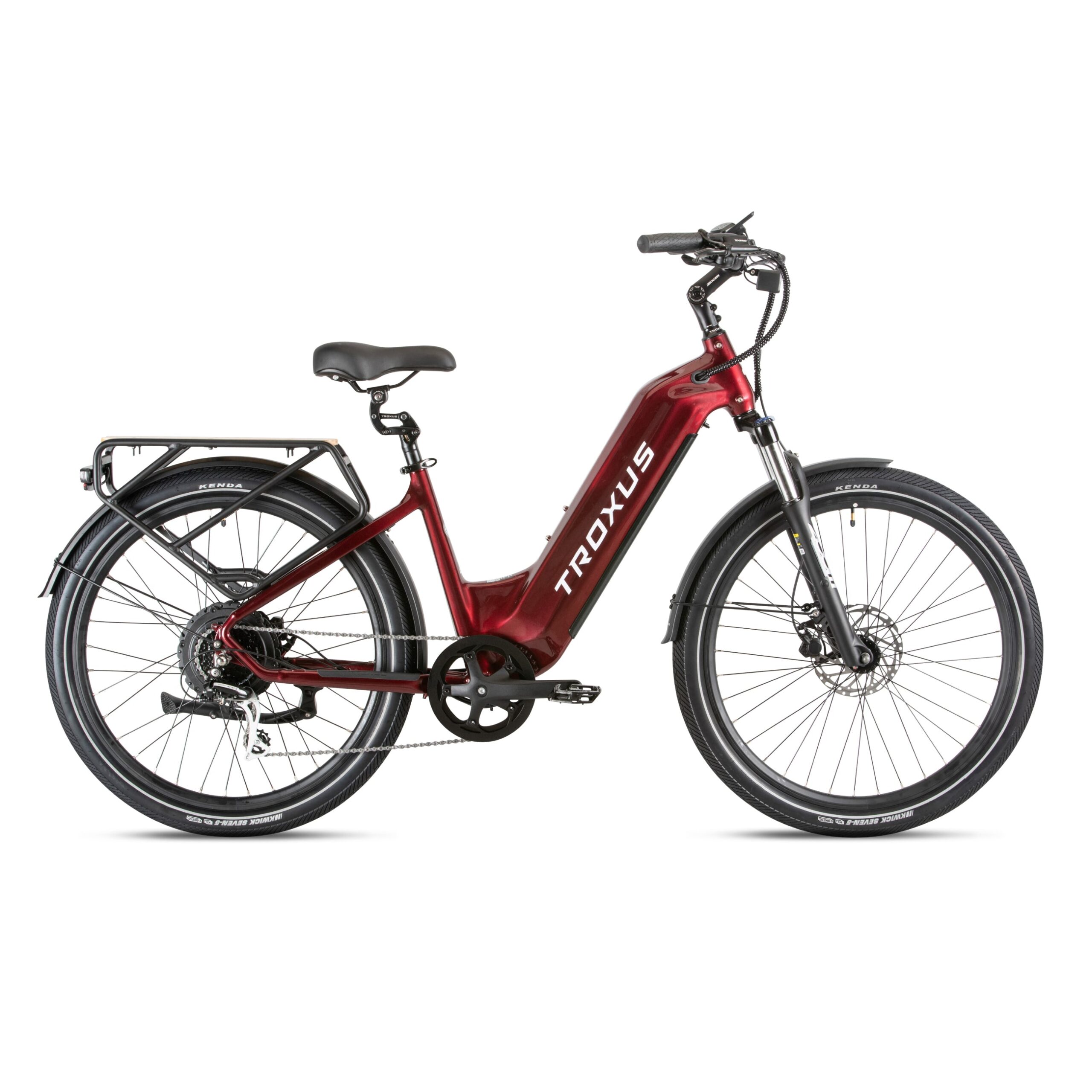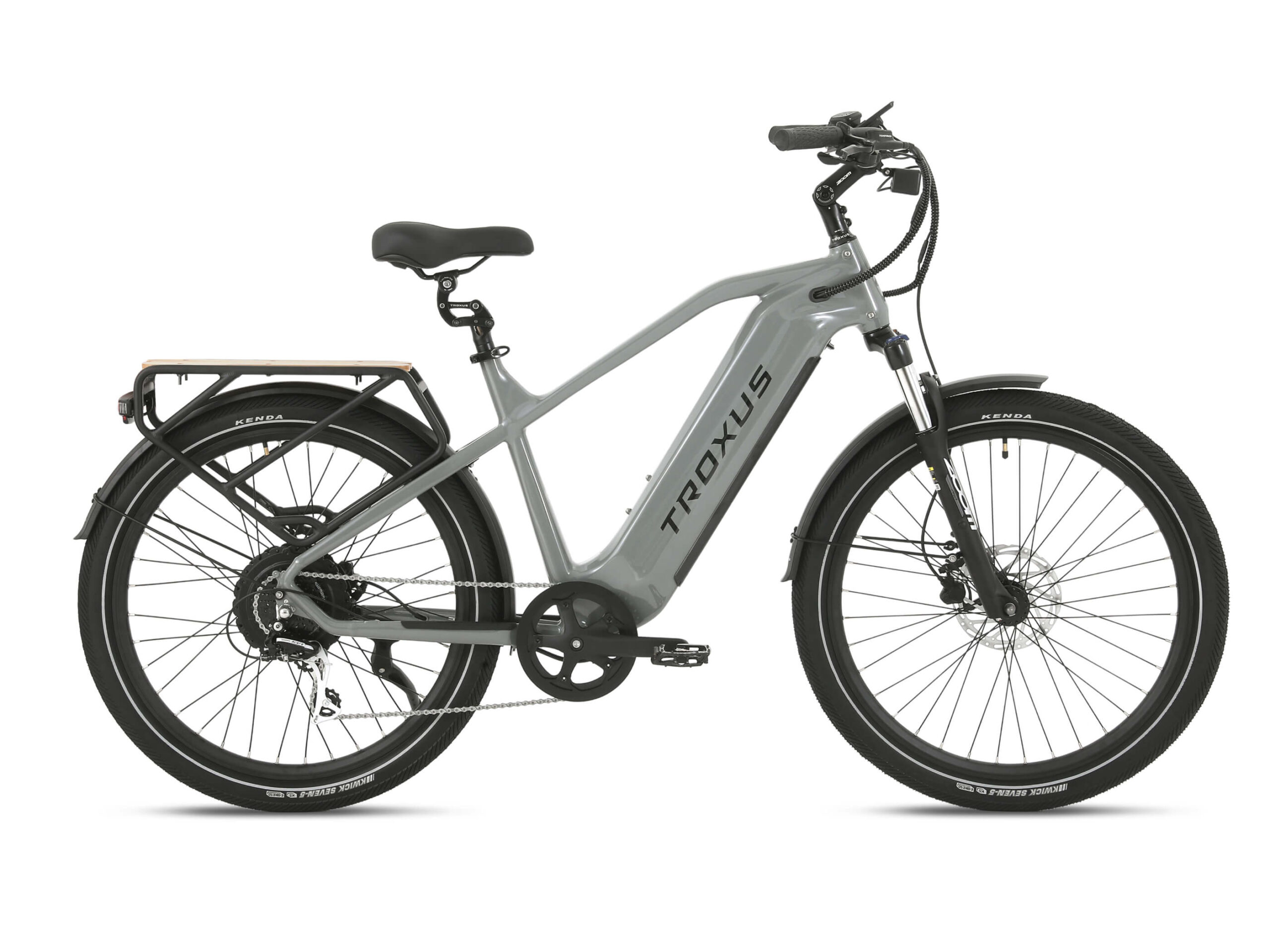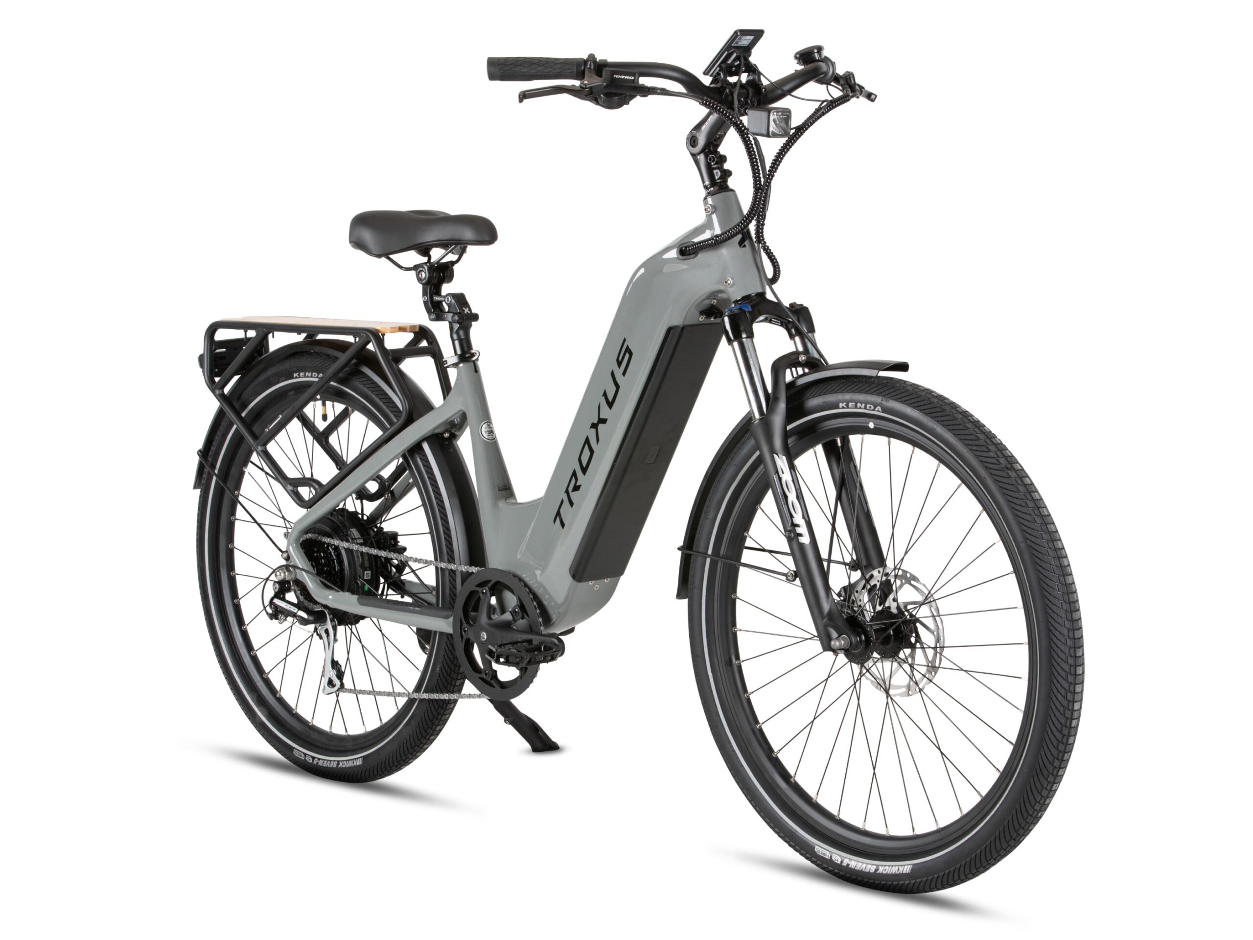 Tektro® hydraulic disc brakes with 180mm rotors provide reliable stopping power, even when fully loaded. Brake sensors cut motor power instantly for an extra layer of safety. The 80 Lux front light illuminates your path, while the KENDA® 27.5″x2.4″ tires feature reflective stripes and puncture-resistant E-50 rated construction for confidence on any surface.