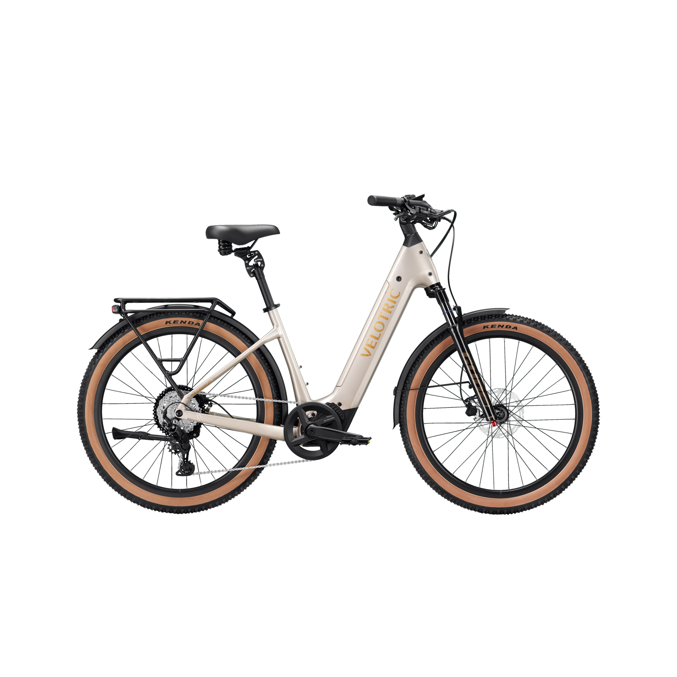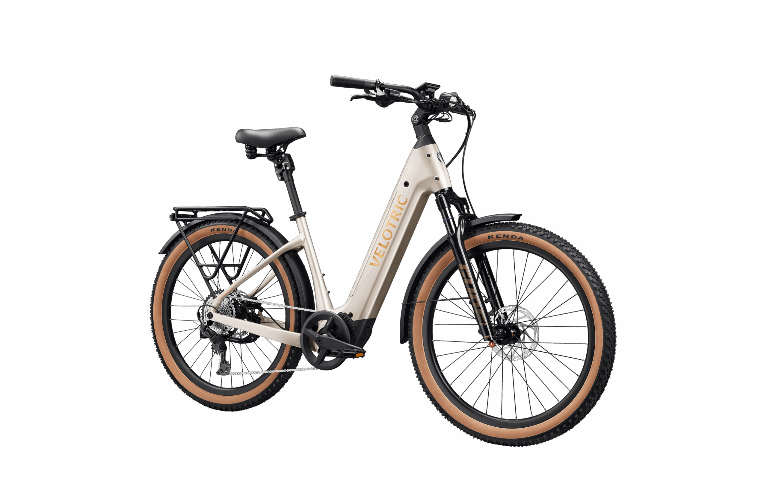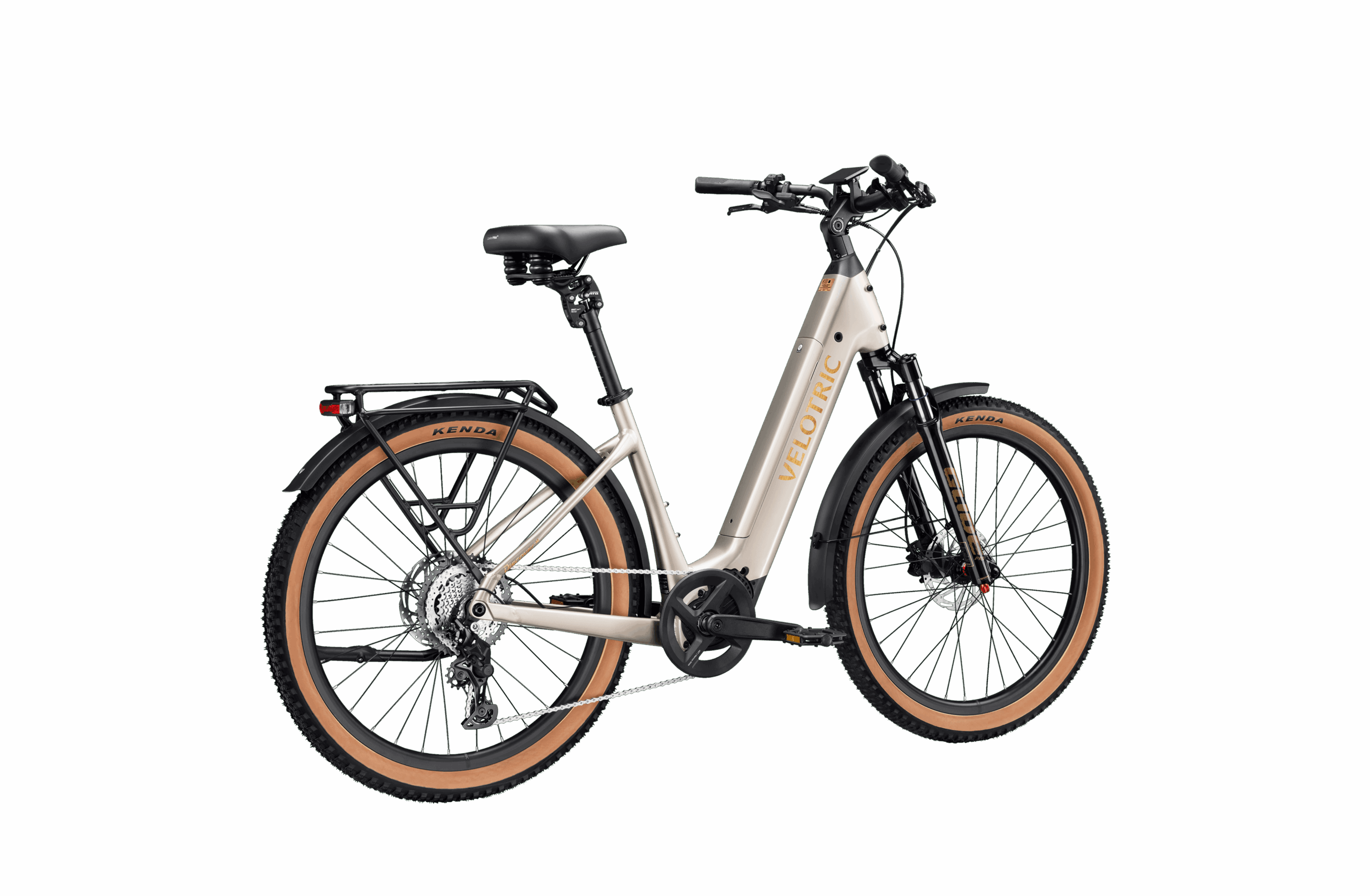 - Complete Safety Package: 500-lumen integrated front light, rear light with braking and turn signal indicators, and Tektro hydraulic disc brakes with 180mm rotors.