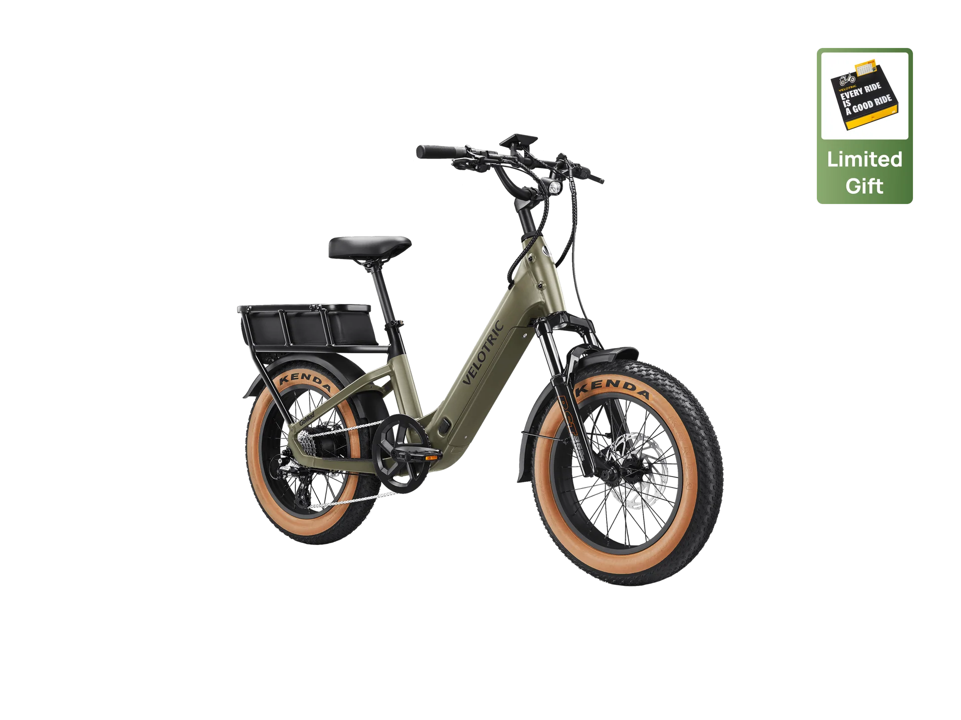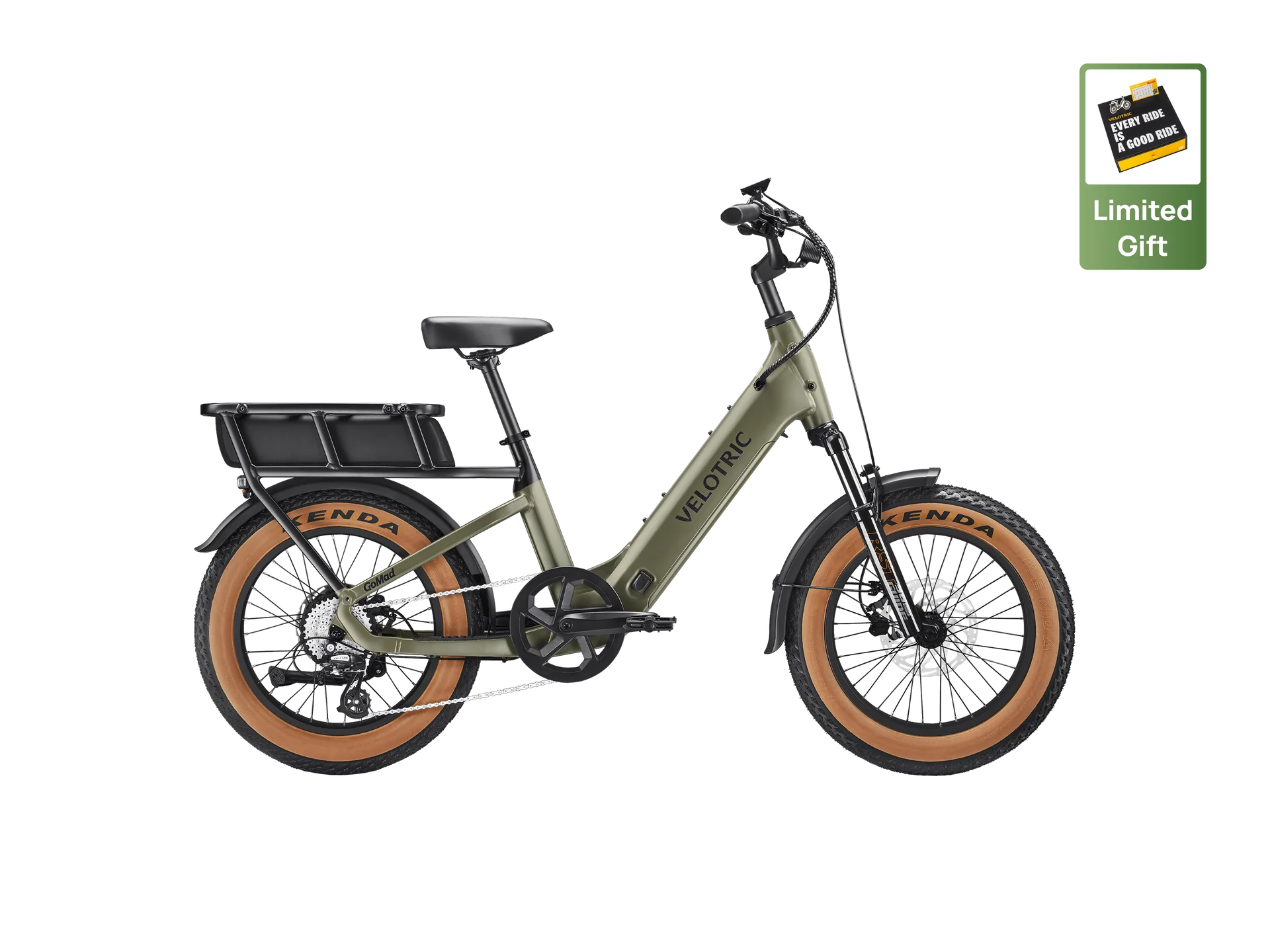 The Velotric GoMad: a powerful fat tire utility e-bike driven by a 750W motor and 85Nm of torque. Built for riders who refuse to be limited, this compact fat tire electric bike transforms adventures with large load capacity rear rack.