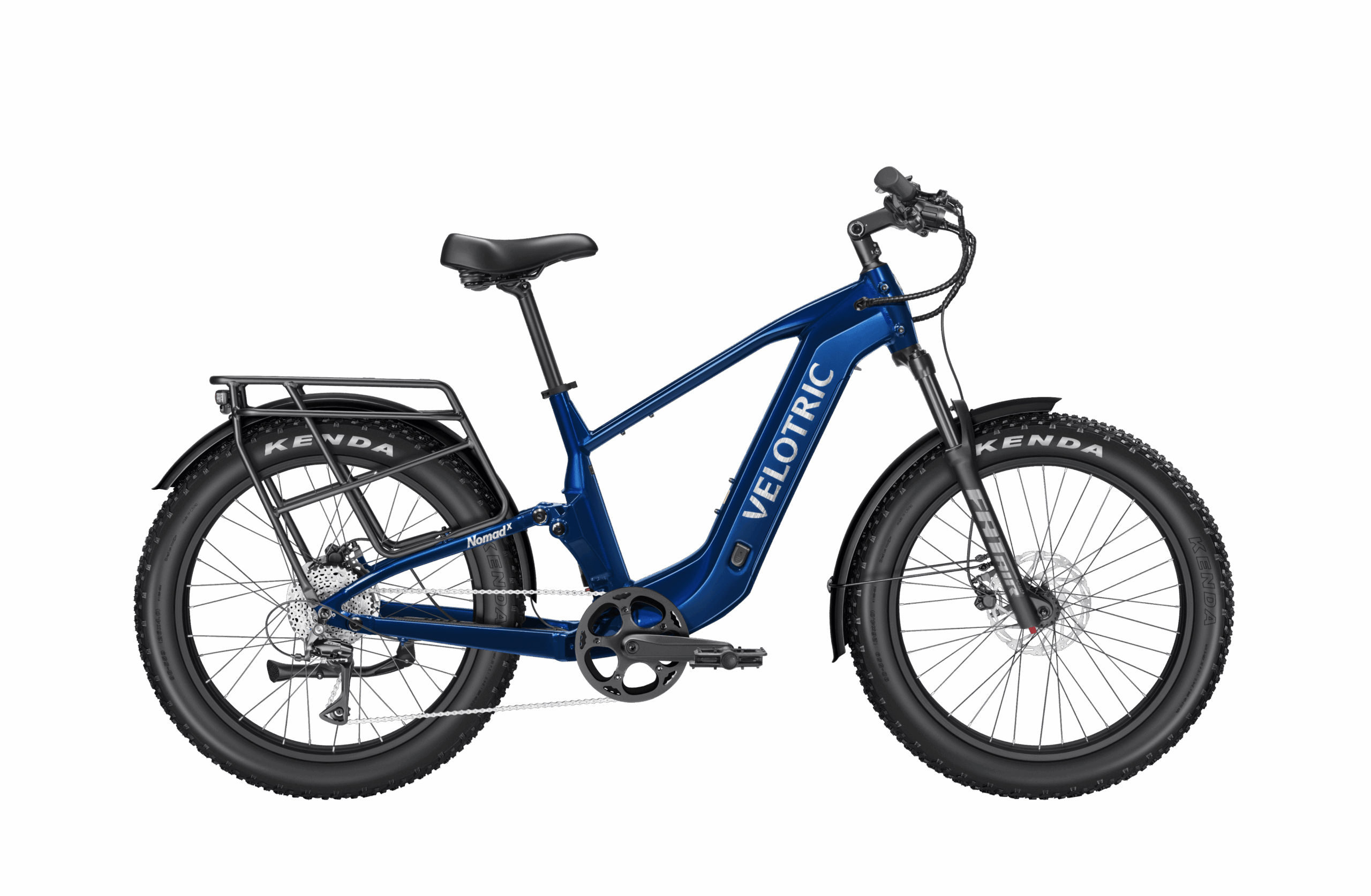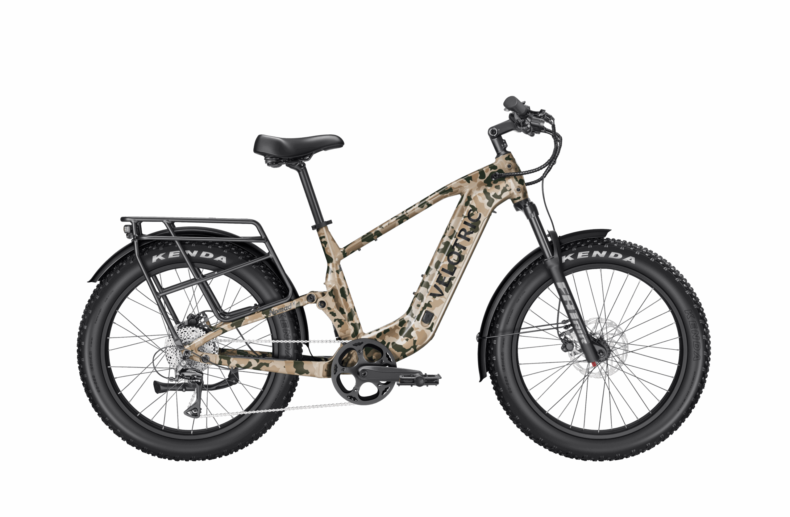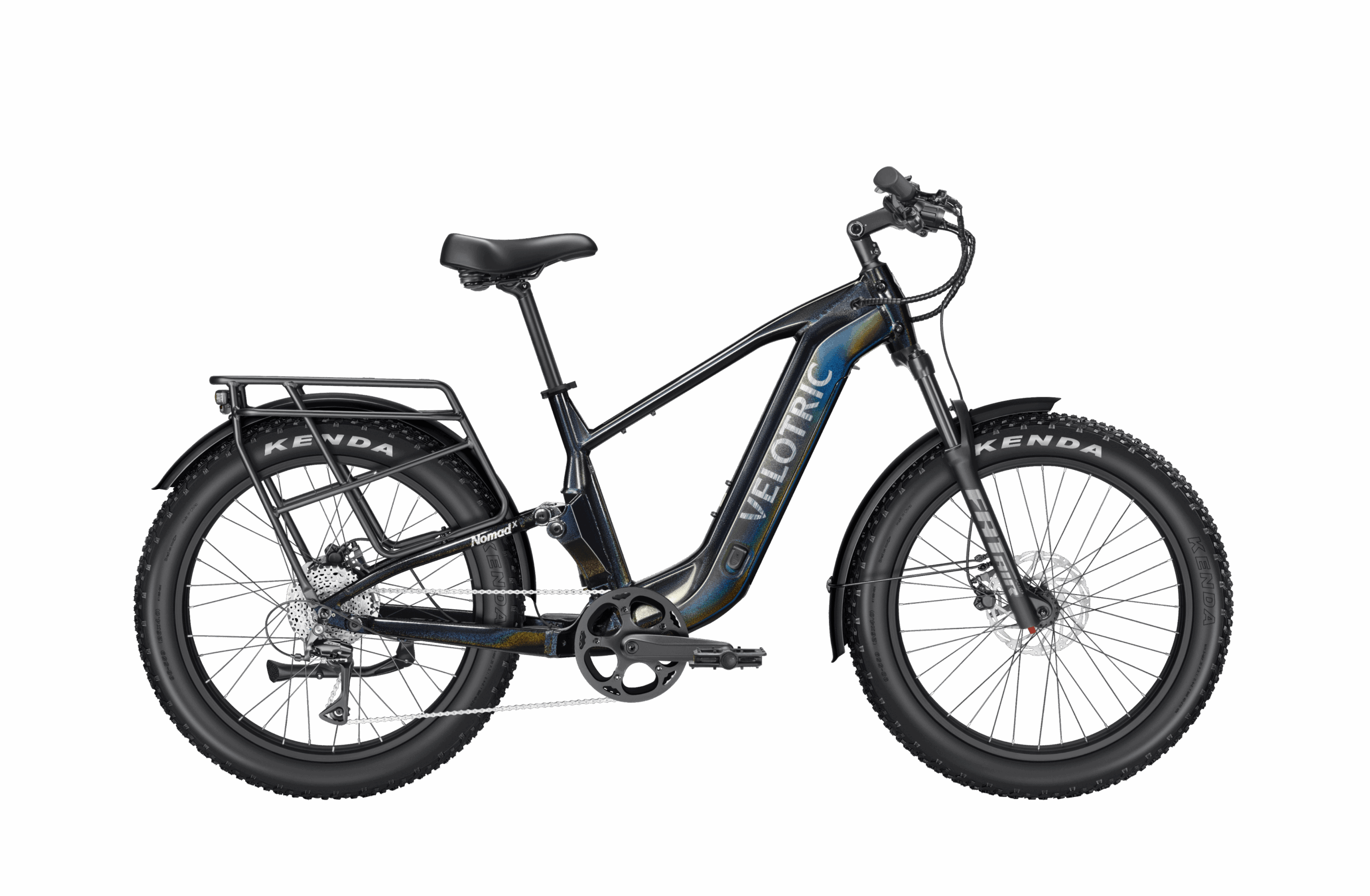 The Velotric Nomad 2X is an extreme-terrain dual suspension fat tire e-bike built for the ultimate adventure. Featuring full air suspension (120mm front / 80mm rear), a 750W motor with 105Nm of torque, and a massive 801Wh battery delivering up to 75 miles of range, it conquers the toughest trails with ease. With a 560 lbs payload capacity, 1000 lbs towing capability, all-new Stealth Mode, and dual UL certification, it’s the most capable and versatile off-road e-bike ever built.